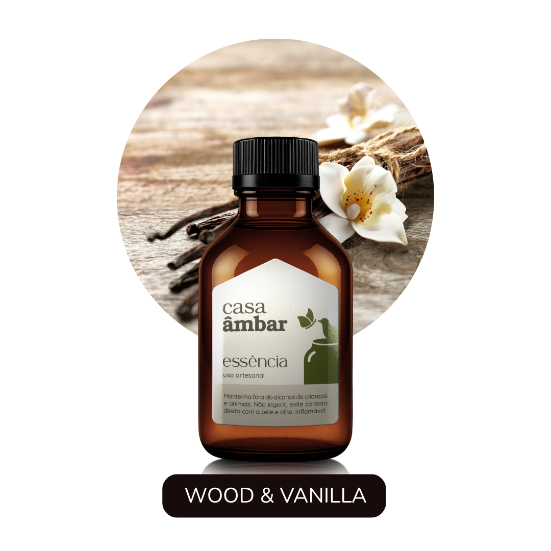 A Essência, Wood & Vanilla traz um aroma amadeirado com fundo de baunilha e caramelo. Suas notas proporcionam uma sensação quente e elegante.