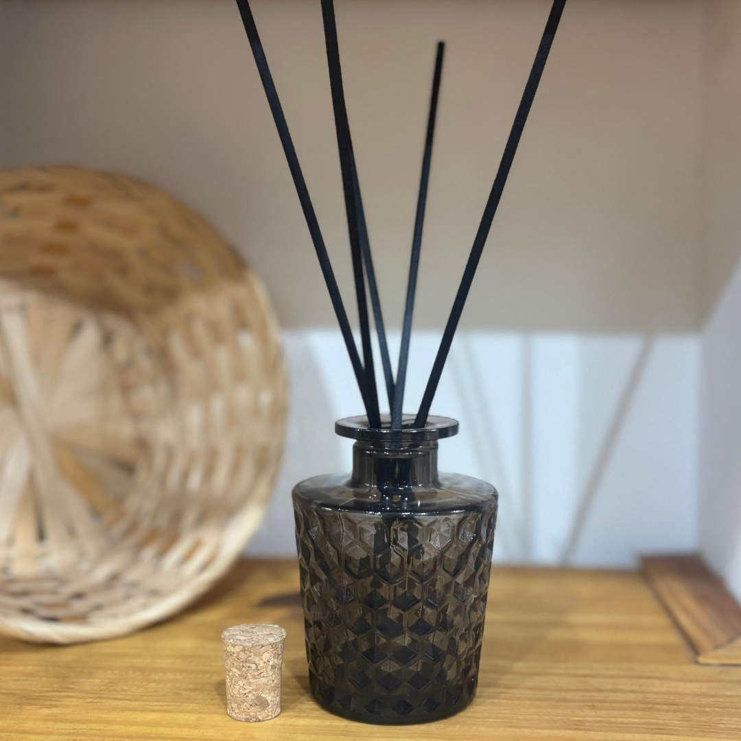 • Quantidade: 1 frasco com rolha + 5 varetas de fibra preta 25cm